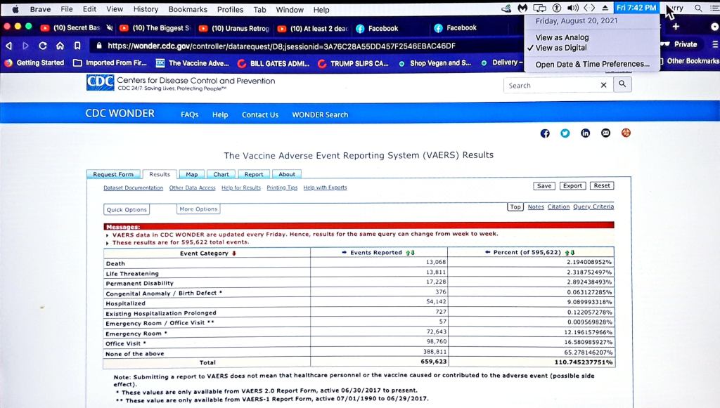 VAERs Update – 13,000 Vax related Deaths (08/20/21) CDC Results An article by Carlos James Share this:TweetLike Loading... Related