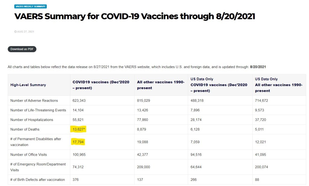 VAERS August 2021 update – 21,000+ VAX Deaths and Permanent Disability An article by Carlos James Share this:TweetLike Loading... Related