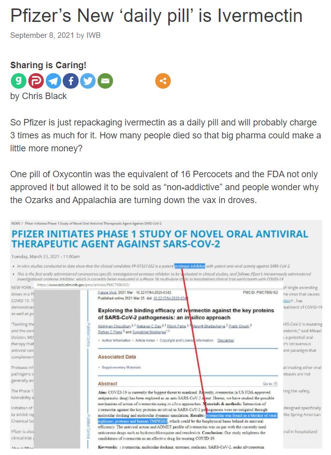 You’ve Been Lied To – The New Pfizer Daily Pill is IVERMECTIN!!! An article by Carlos James Why did the Deep State cover up these cures? Share this:TweetLike Loading... Related