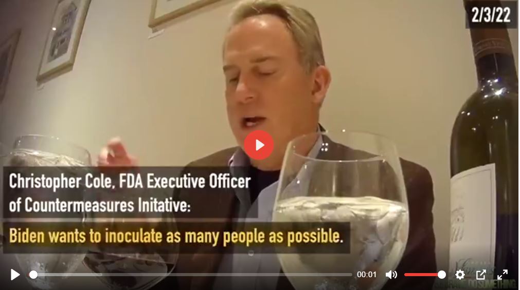 FDA EXECUTIVE ON A HIDDEN CAMERA REVEALS FUTURE COVID POLICY An article by Carlos James FDA EXECUTIVE ON A HIDDEN CAMERA REVEALS FUTURE COVID POLICY Share this:TweetLike Loading... Related