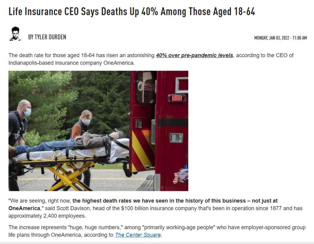 Insurance Company CEO Reports a 40% Increase in Deaths over last year An article by Carlos James Share this:TweetLike Loading... Related
