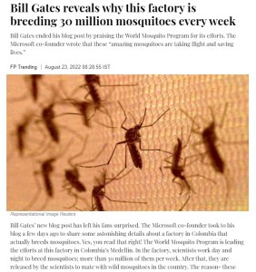Bill Gates Wants you Vaxed An article by Carlos James https://thecountersignal.com/genetically-modified-mosquitoes-vaccinate-a-human/ Bill Gates breeding 30Mil Mosquitos per week: https://www.firstpost.com/world/bill-gates-reveals-why-this-factory-is-breeding-30-million-mosquitoes-every-week-11096571.html Share this:TweetLike Loading... Related
