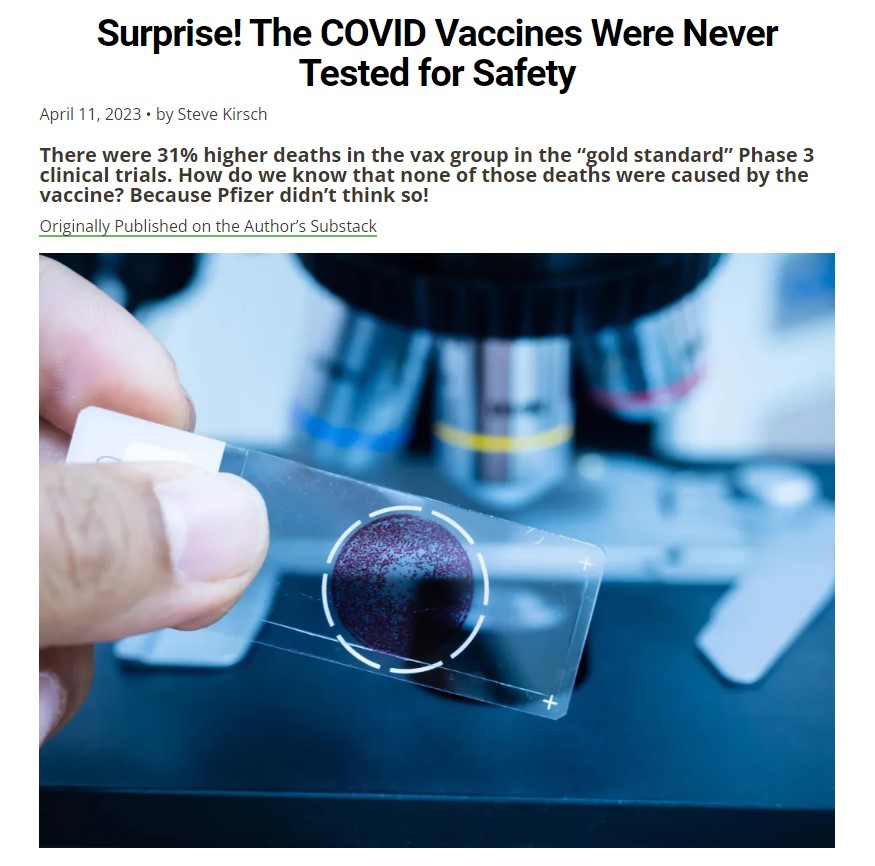 The Vaccine Was Never Tested An article by Carlos James Surprise! The COVID Vaccines Were Never Tested for Safety Share this:TweetLike Loading... Related